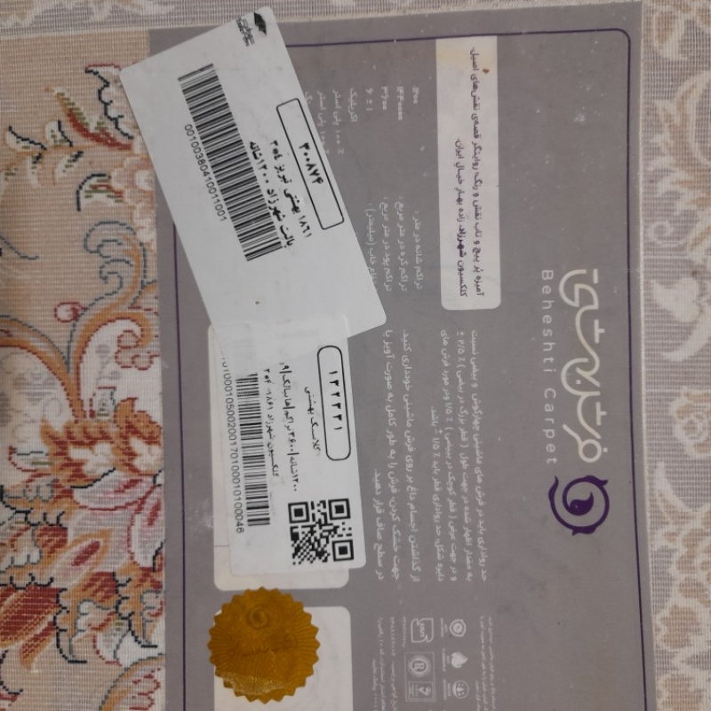 یک عدد فرش ۱۲ متری ماشینی کاملا نو و هنوز شسته نشده . بهشتی تبریز