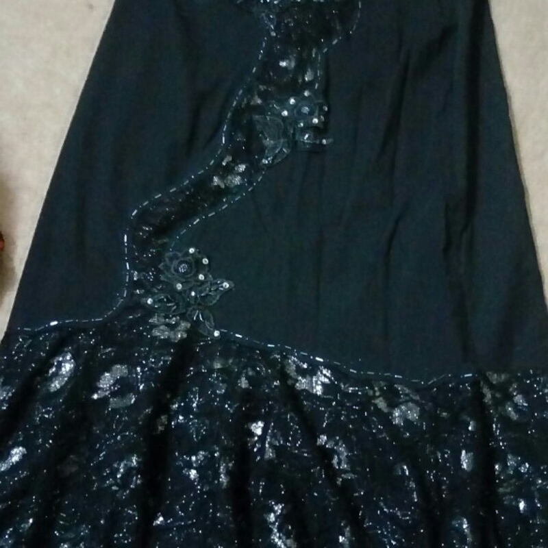 یک دامن قشنگ مجلسی کارشده روی دامن و حالت گن مانده دارد